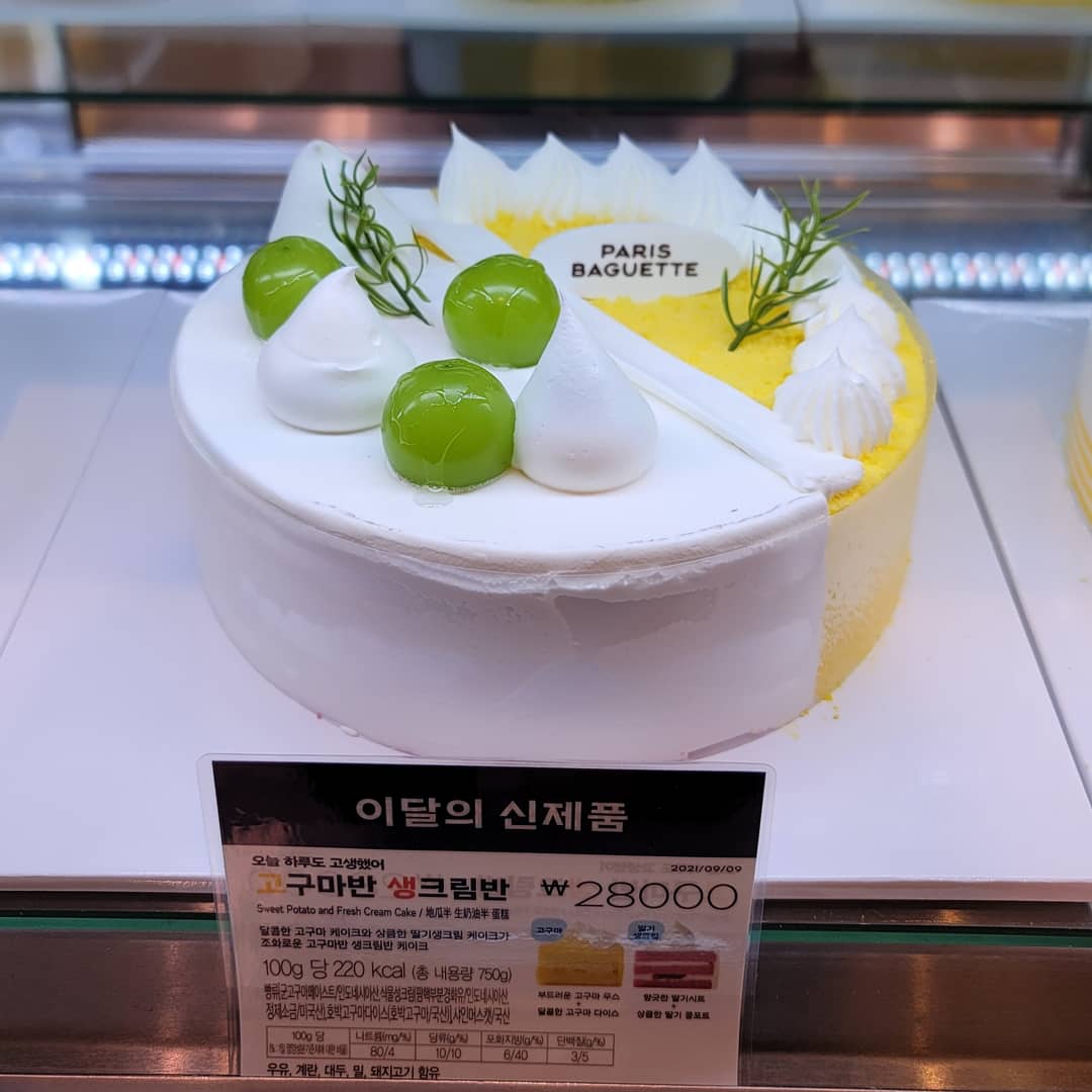 파리바게트 석계역점 신제품 고구마반 생크림반 케이크입니다.
